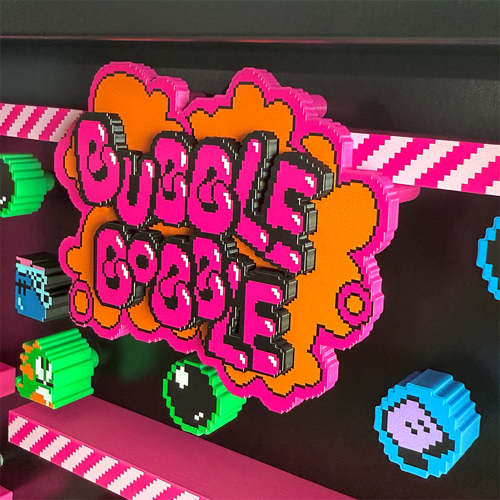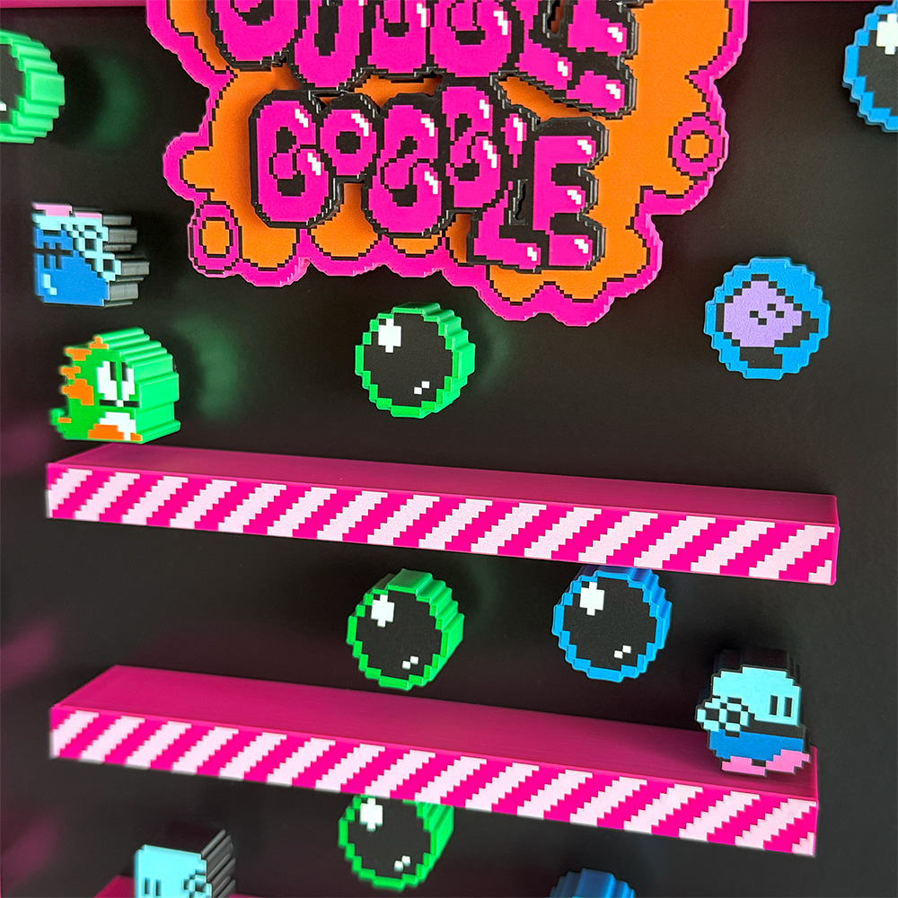 Whether you’re a long-time fan of Bubble Bobble or simply appreciate innovative art pieces, this shadow box is sure to impress with its blend of nostalgia and creativity. It serves as both a decorative statement piece and a homage to a popular gaming title.