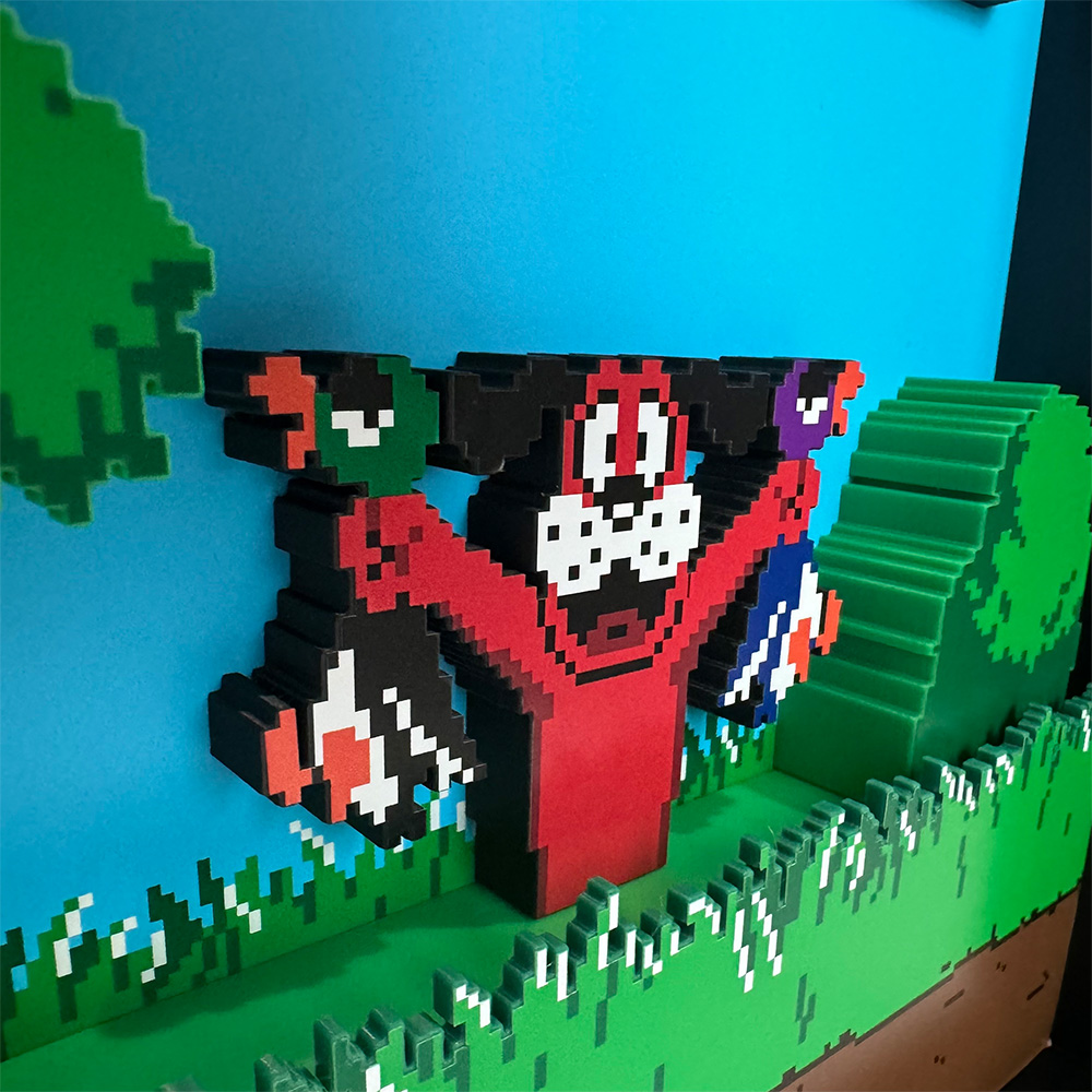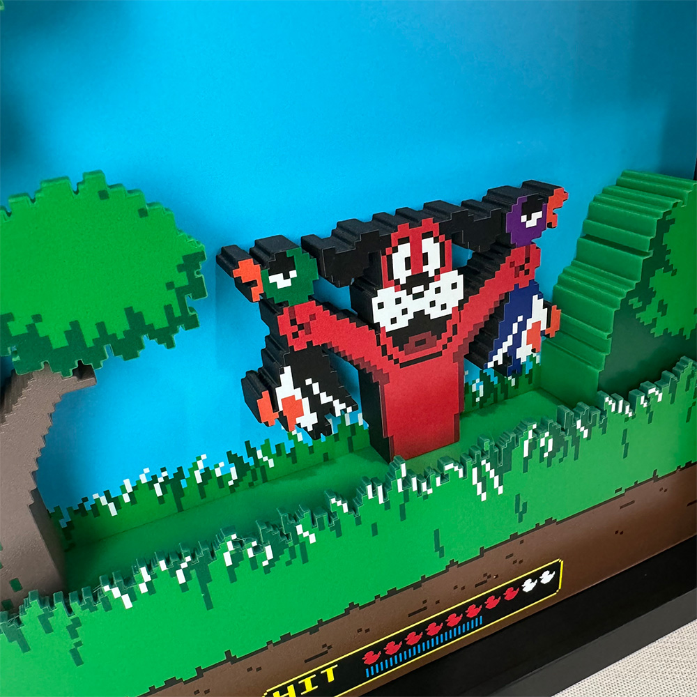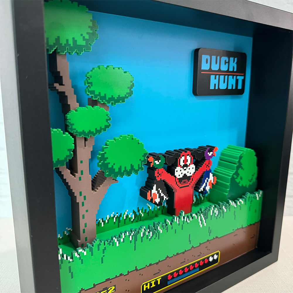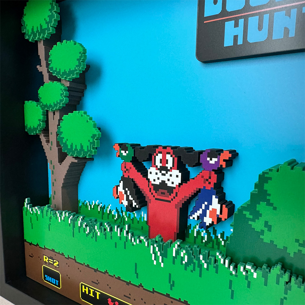 Step into the world of Duck Hunt with our stunning shadow box featuring a gameplay snapshot with a 3D effect.