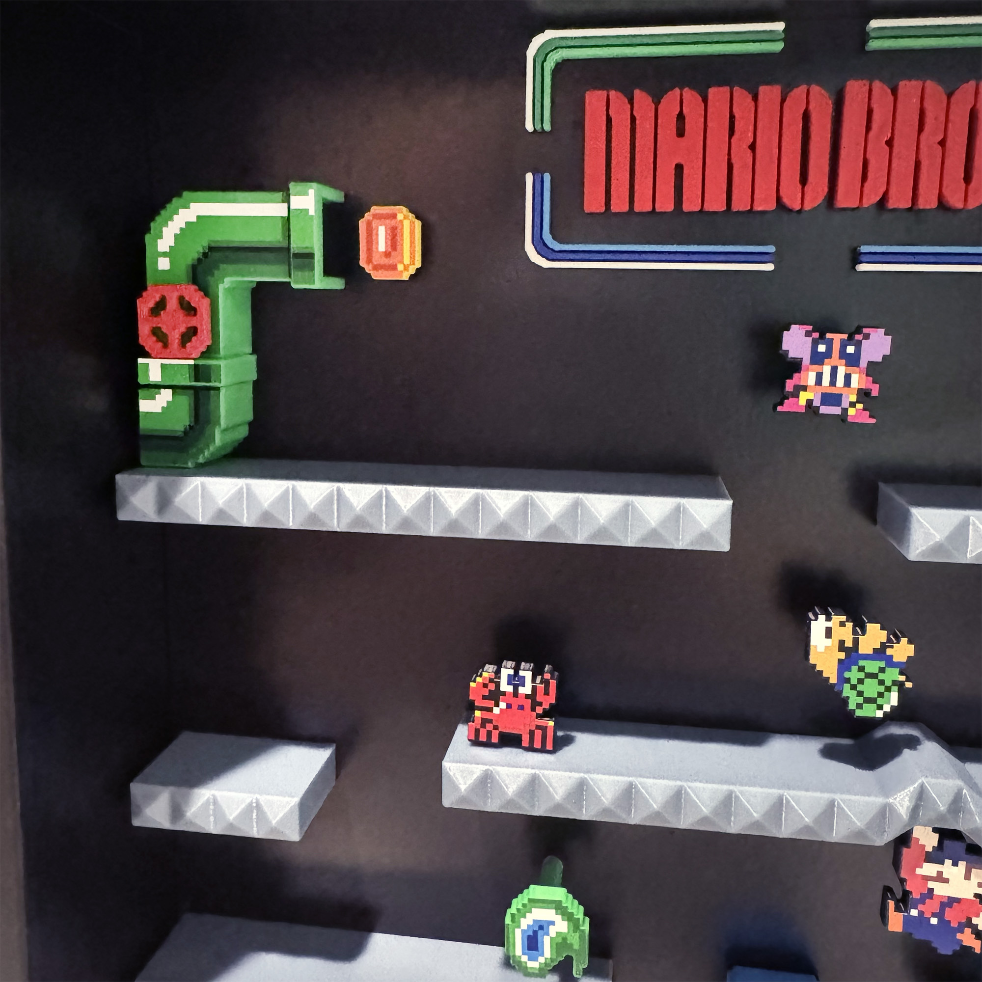 Whether you’re a long-time fan of Mario and Luigi, or simply appreciate innovative art pieces, this shadow box is sure to impress with its blend of nostalgia and creativity. It serves as both a decorative statement piece and a homage to a popular gaming title.