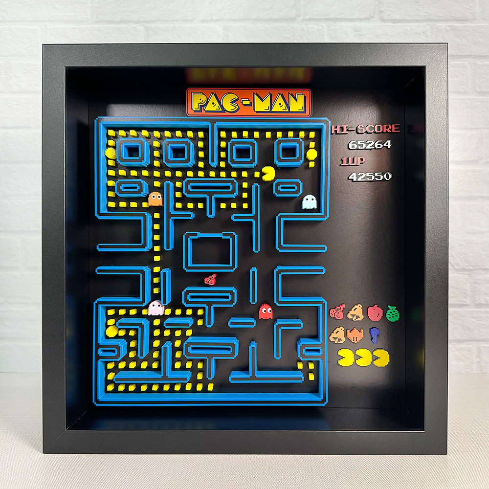 Step into the world of Pac-Man with our stunning shadow box featuring a gameplay snapshot with a 3D effect.